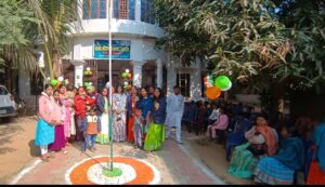 कार्यक्रम की शुरुआत विद्यालय की निदेशिका कुमारी स्नेहलता ने निर्धारित समय पर झंडोत्तोलन कर की। इसके बाद विद्यालय के नन्हे-मुन्ने बच्चों ने देशभक्ति
