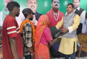 सोमवार को महापौर प्रत्याशी सह समाजसेवी सूरज झा ने पंडित शिवराम झा चौक स्थित झामुमो शहरी हेल्प डेस्क से जरुरतमंद लोगों के बीच कंबल वितरण किया। इस दौरान उन्होंने 300 लोगों को ठंड की ठिठुरन से निजात दिलाने का प्रयास किया। मौके पर सूरज ने कहा कि चुनाव की घोषणा होने वाली है कंबल वितरण इसलिए नहीं किया जा रहा है,