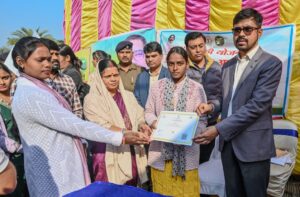 आपकी-योजना आपकी-सरकार आपके-द्वार कार्यक्रम के तहत “सेवा का अधिकार सप्ताह” कार्यक्रम के दौरान उपायुक्त श्री नमन प्रियेश लकड़ा ने सभी को संबोधित करते हुए कहा कि आमजनों के समस्याओं का समाधान और निराकरण को लेकर इसका आयोजन किया जा रहा है, ताकि अपने पंचायत में ही आप सभी अपने समस्याओं का आवेदन देने के साथ नई योजनाओं की जानकारी और लाभ लेने के तरीके से अवगत हो सके। आगे उपायुक्त ने कहा कि आवेदन जमा करते समय इस बात विशेष ध्यान रखे कि आवश्यक दस्तावेज, अपना हस्ताक्षर और मोबाइल नंबर फॉर्म के साथ हो, ताकि समय पर आपको आवेदन की प्रक्रिया से जुड़ी जानकारी दी जा सके। आगे उन्होंने जानकारी दी कि जिले में 28.11.2025 तक आयोजित सेवा का अधिकार सप्ताह के तहत आयोजित शिविर में आम जनों से झारखण्ड राज्य सेवा देने की गारंटी अधिनियम, 2011 में सूचीबद्ध सेवाओं एवं तत्सम्बंधी समस्याओं से सम्बन्धित आवेदन प्राप्त किया जा रहा है एवं आवेदनों का त्वरित निष्पादन किया जा रहा है। साथ ही कार्यक्रम के अन्तर्गत मुख्य सेवा प्रक्षेत्र (सर्विस फोकस एरिया) के अन्तर्गत आवेदन पत्र प्राथमिकता के आधार पर (जाति प्रमाण पत्र, स्थानीय निवासी प्रमाण पत्र, आय प्रमाण पत्र, जन्म प्रमाण पत्र, मृत्यु प्रमाण पत्र, नया राशन कार्ड, दाखिल खारिज मामलों का निष्पादन, भूमि की मापी (मेजरमेंट ऑफ लैंड), भूमि धारण प्रमाण पत्र, विभिन्न प्रकार के सामाजिक सुरक्षा पेंशन योजनाओं की स्वीकृति से संबंधित आवेदन प्राप्त किये जायेंगे), ताकि ससमय आवेदनों का निराकरण किया जा सके। जिला प्रशासन का प्रयास है कि आपकी योजना, आपकी सरकार, आपके द्वारा कार्यक्रम के तहत सेवा का अधिकार सप्ताह कार्यक्रम माध्यम से ज्यादा से ज्यादा लोगो के समस्याओं का निराकरण किया जा सके।