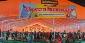 अति रुद्र महायज्ञ एवं श्रीमद् भागवत कथा के चौथे दिन देवघर का आध्यात्मिक वातावरण मानो किसी दिव्य उत्सव का प्रत्यक्ष दृश्य बन गया। सुबह जैसे ही सूर्य की पहली किरणें देवभूमि पर पड़ीं, पूरा परिसर शंखनाद, मृदंग, वेद–मंत्रों और हवन्-कुण्डों की सुगंधित आहुतियों से पवित्र हो उठा। ऐसा प्रतीत हो रहा था जैसे बैद्यनाथधाम स्वयं श्रद्धा के शिखरों पर अवस्थित हो।
